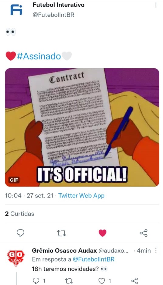 O anúncio oficial da parceria foi realizado nesta segunda-feira, 27, em uma transmissão ao vivo e conjunta no Instagram, diretamente do centro de treinamento do Grêmio Osasco Audax, na Vila Yolanda. Durante o evento ao vivo, Yuri Berbis, head de conteúdo do Futebol Interativo, e Rodrigo Alves, coordenador de Marketing do Osasco Audax, fizeram a clássica troca de camisas para oficializar e registrar o