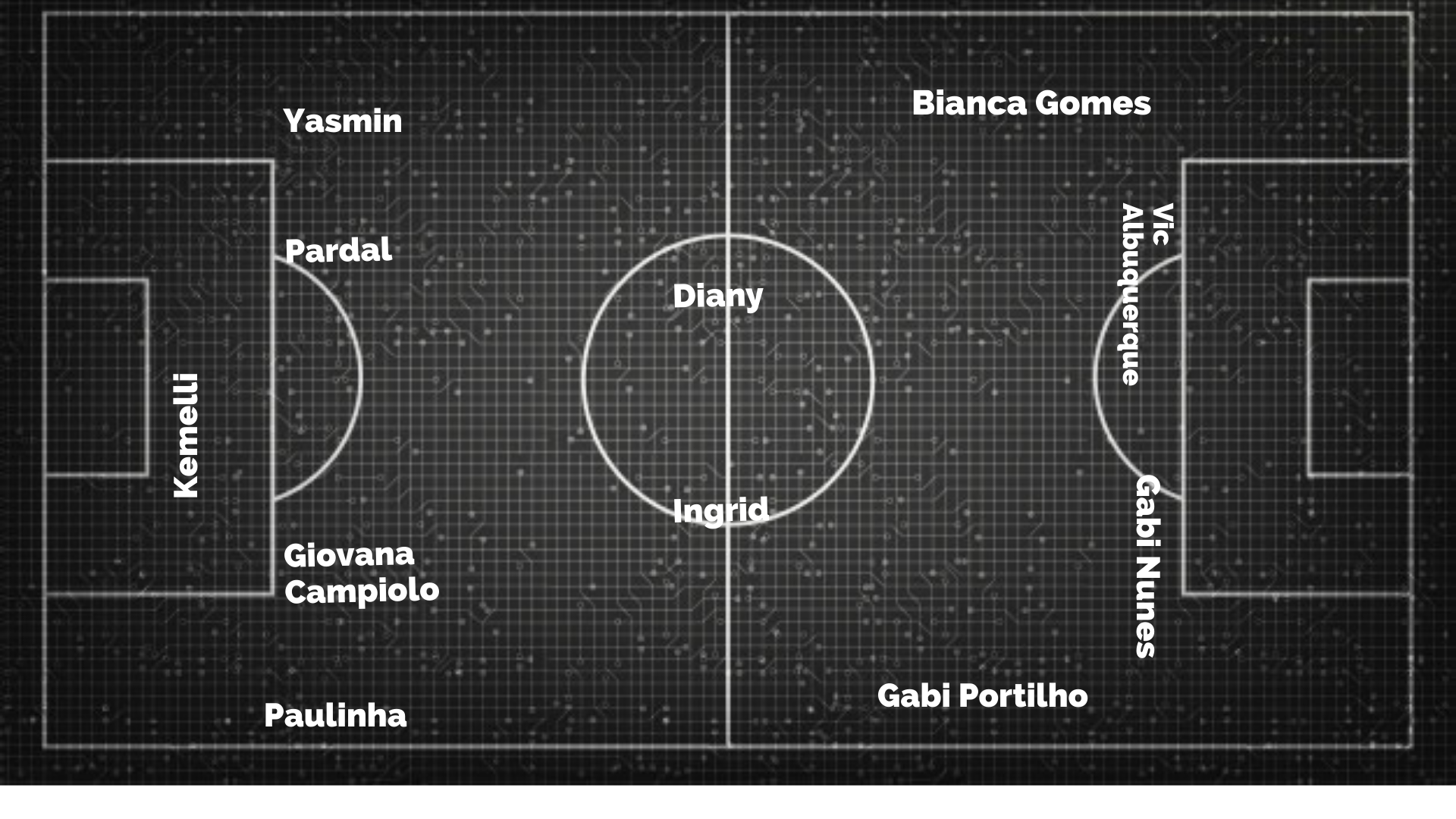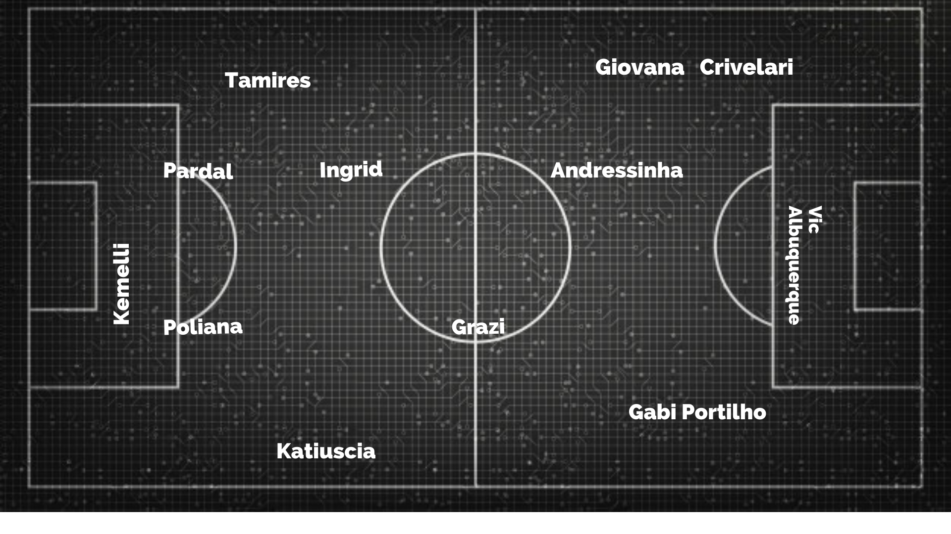 Com isso, o Corinthians deve usar uma escalação parecida com a que usa no desfalque. Colocar mais Katiuscia e a Ingrid, por outro lado, deve entrar como 1 volante. Andressinha que tem um ótimo chute de longa distância e joga com tranquilidade e trabalha bem com a Zanotti. É uma oportunidade das alvinegras atuarem mais no comando de Arthur Elias. No jogo contra o São Paulo na 12ª rodada, é possível destacar o trabalho da meia e da lateral.